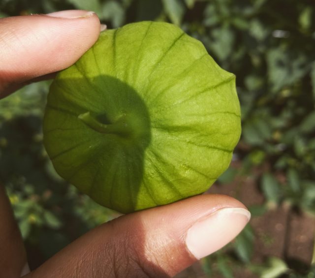 I suppose I could ask the man standing a few feet away but that would be too reasonable. I feel my way around the little husk tomatoes…here small, there big, all unripe and sticking to their shells…letting the fruits speak to their readiness. Pedaling back, I try to recall what it is I dread of the idyllic but my mind is reluctant to speak against its own joy. Salsa verde, here we come!